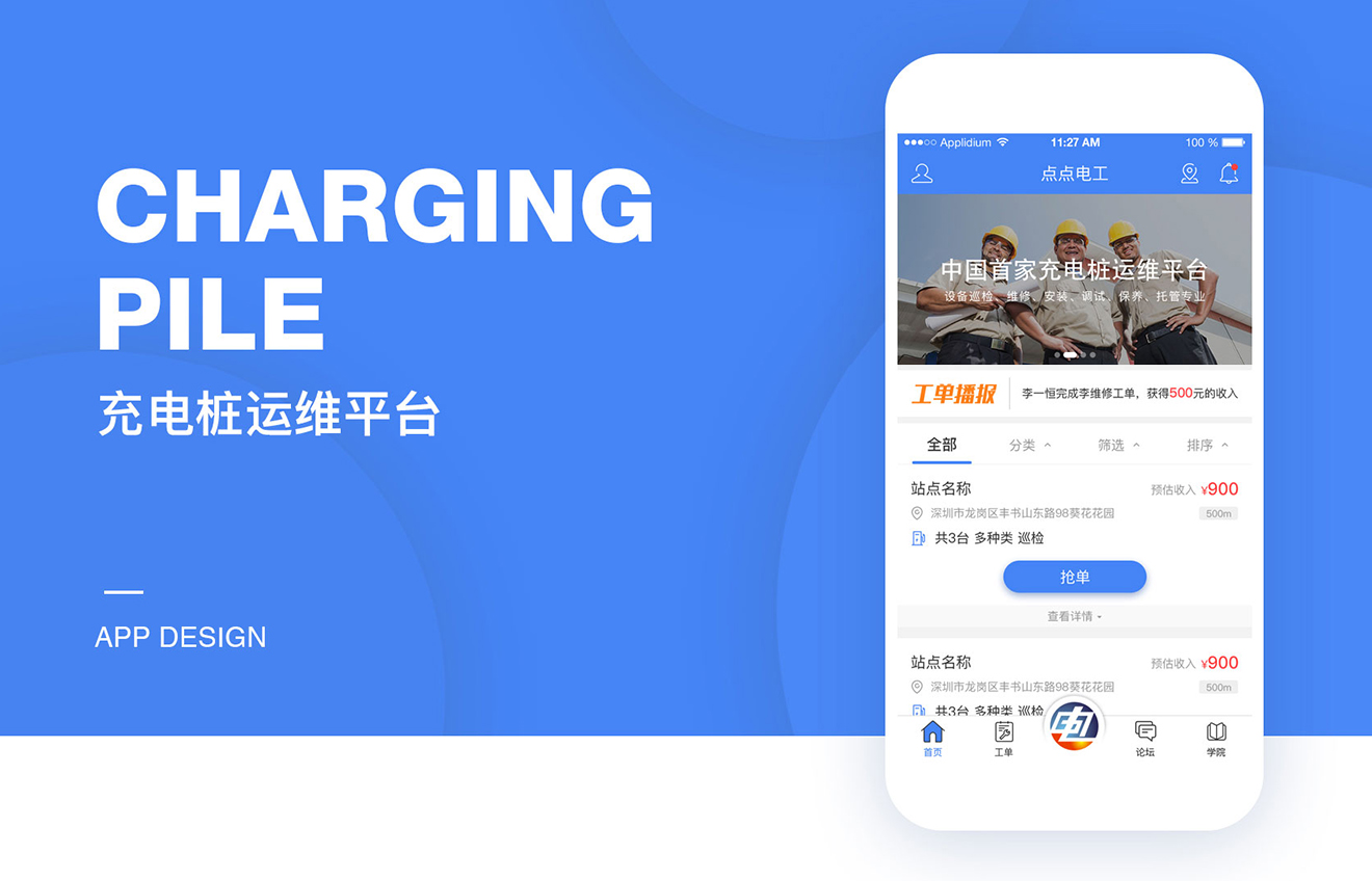 通過(guò)手機APP,實(shí)時(shí)發(fā)送電樁故障。通過(guò)手機定位的方式,將巡檢、維修的任務(wù)派送給附近的工程師,工程師通過(guò)APP進(jìn)行接單、搶單任務(wù),故障維修完成后,有充電樁運營(yíng)商、設備生產(chǎn)商經(jīng)過(guò)實(shí)地驗收,測試故障已排除,設備運行正常,通過(guò)點(diǎn)點(diǎn)電工后臺進(jìn)行確認,工程師即可獲得相應的報…